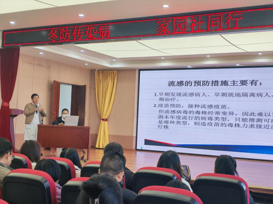 活动特别邀请大堡子卫生院专业医师现场授课,医师结合冬季气候特点,用通俗易懂的语言详细讲解了流感、流行性腮腺炎、水痘、手足口病等常见传染病的传播途径、典型症状及防控要点,重点强调了勤洗手、常通风、戴口罩、少聚集等日常预防措施,以及幼儿出现疑似症状后的正确处置方法。