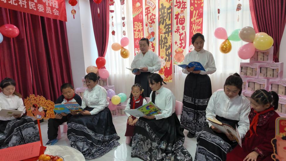 本次活动的内容设计丰富多彩,场面气氛热烈而温馨。城北区艺博幼儿园的师生们精心编排了情景表演《书香润心 共读时光》,孩子们用稚嫩清澈的童声和真挚投入的演绎,生动再现了亲子共读时的温暖互动与情感共鸣,展现了阅读带来的家庭温情与成长力量;李桂芳、赵娟旭、张有瑞等多名阅读爱好者依次上台,结合各自的读书体验,真诚分享阅读带来的启发与思考,畅谈书籍中的智慧与人生感悟;陶北村的幸福专员们也带来了深情质朴的诗朗诵,他们用最平实而有力的语言,娓娓道出扎根基层、默默奉献、真心服务群众的责任与初心;最后,由村“两委”成员集体朗诵的《逐光向新,共筑陶北新辉煌》,以昂扬的语调抒发了他们带领全体村民共同奋斗、致力于建设和美乡村、共创陶北新未来的坚定信心与宏伟愿景。