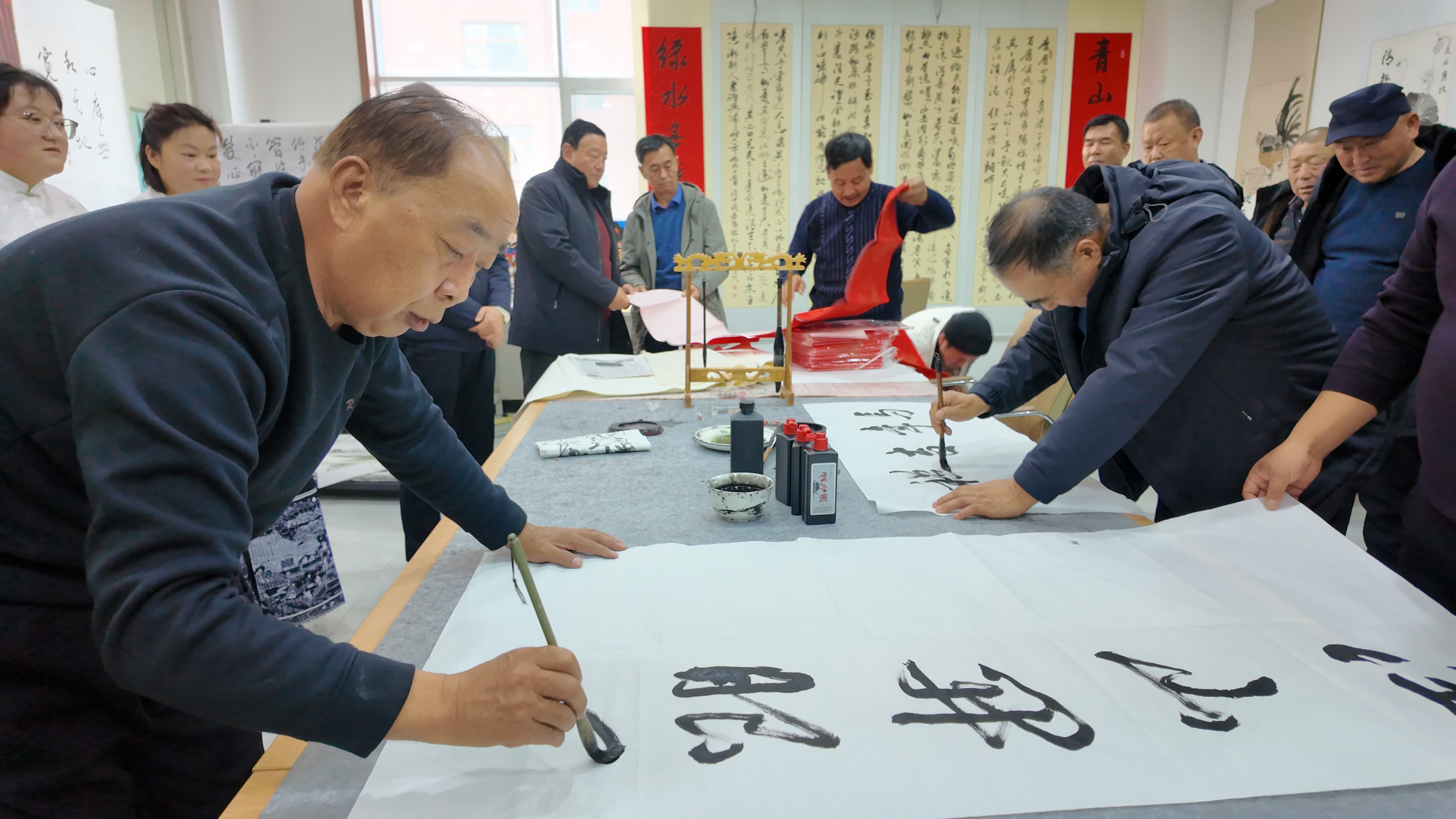 书香与墨香相融,文化底蕴与淳朴乡情和谐共生。在活动接近尾声之际,陶北村书画协会的成员们齐聚书画室,精心组织了一场别开生面的特色书法分享活动。他们将自己读书的深刻感悟凝聚于笔墨之间,通过遒劲有力的书法作品淋漓尽致地展现了文化的魅力与深度。活动现场墨香四溢,艺术氛围浓厚,为每一位参与者带来了沉浸式的文化体验,精彩的书法作品不时赢得在场观众的阵阵热烈掌声与由衷赞叹。