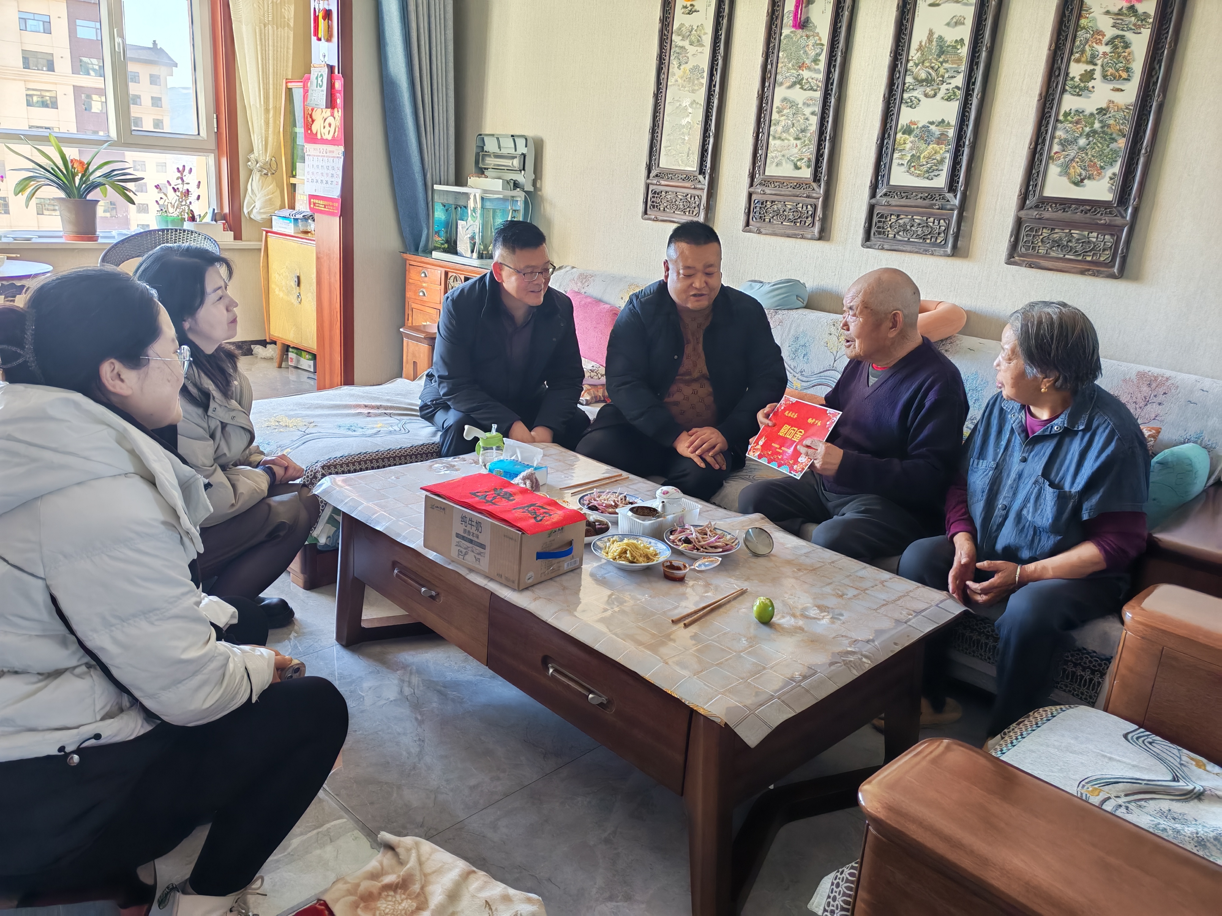 新春将至,岁寒情暖。为切实把党组织的关怀与温暖送到群众身边,近日,西宁市城北区大堡子村陶北村“两委”班子成员开展新春走访慰问活动,重点看望慰问村内老党员、患病群众及困难家庭,为他们送上节日的祝福、慰问品和新春的美好祝愿。