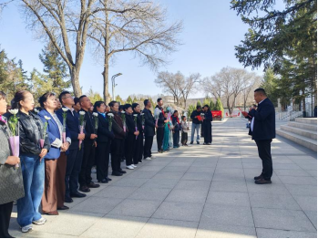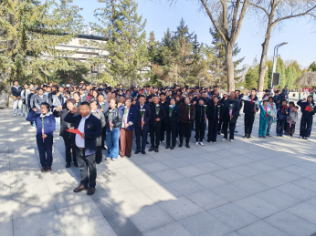 随后,全体人员肃立默哀一分钟,深切追思革命先烈的英勇事迹,并向烈士三鞠躬,表达无限敬仰与深切哀悼。默哀毕,大家手持鲜花,依次走向烈士纪念碑前敬献鲜花,绕行纪念碑一周,深情瞻仰,追思英烈功绩,接受精神洗礼。